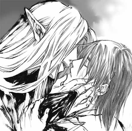 重いー。どうでもいいけど前回も今回もチュウしてませんねタイトルの割に。寸前? セリフにピンときた方はどうもありがとうございます。 絵のネタが尽きたらこういうとこから引っ張ってくることにしよう(笑)。