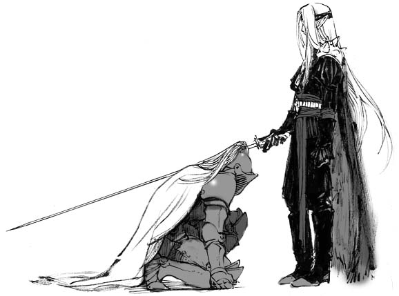 ホントは彼マントしてないんだけど…まいいか(早) え〜なんと言いますか、高潔(仮)な者が仕えるべき相手に対して なんの迷いも無く、むしろ喜びすら覚えながら粛々と跪く姿というのは ものすげーエロスを感じるんですがどうでしょう。